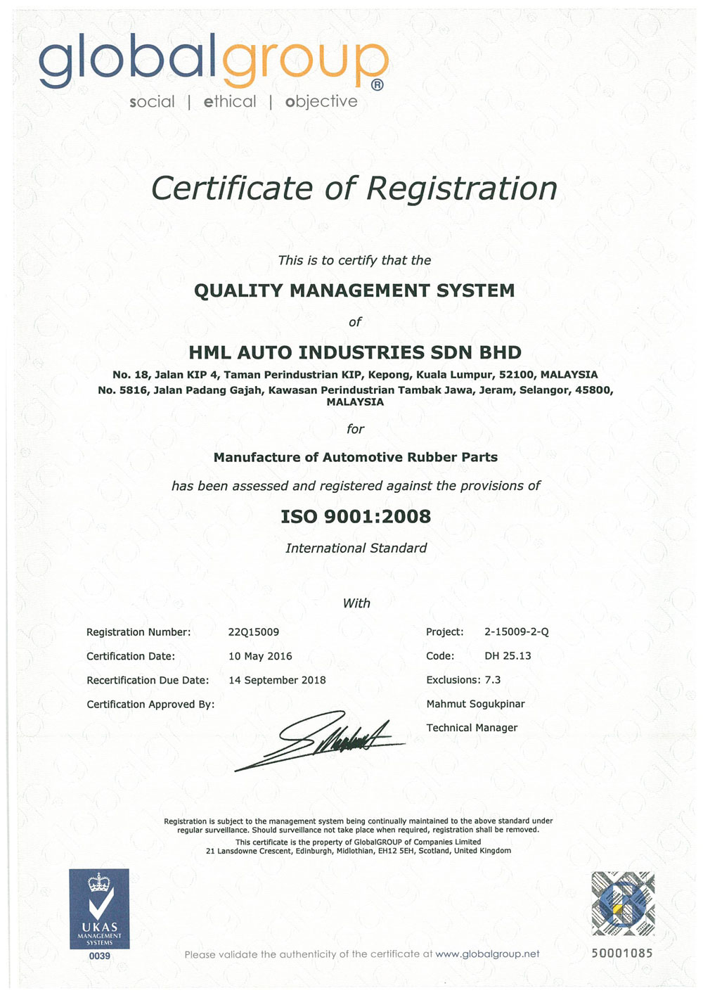 HML Auto Industries Sdn. Bhd., a leading manufacturer of automotive rubber parts.